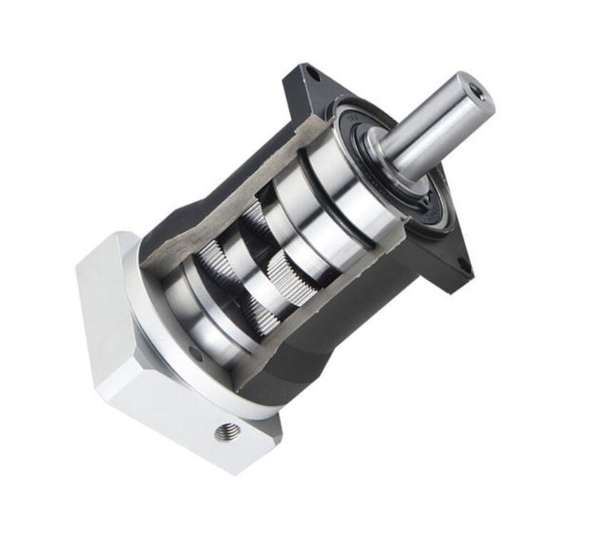 产品简介: 精密行星減速機PF系列,以螺旋齒輪設計,採用精密CNC滾齒機加工,咬合精準、運轉順暢,低噪音。一體式的齒輪箱本體,與同規格型減速機相比,體積小(省1/4以上體積與重量),輸出扭力大、傳動效率高。行星减速机低噪音: 低於65db行星减速机低背隙: 低於3孤分(Arc-min),可選擇3弧分規格。雙段減速在5弧分以內。行星减速机高效率: 單段式在97%以上,雙段式在94%以上。行星减速机高輸入轉速: 可達5,000RPM。行星减速机高扭矩: 比一般標準行星減速機扭矩高。行星减速机高穩定性: 採用高強度合金鋼材,整顆齒輪經硬化處理,非只有表面硬化,確保使用壽命及長期使用仍保持 初的精密度。行星减速机高減速比: 採模組化設計.