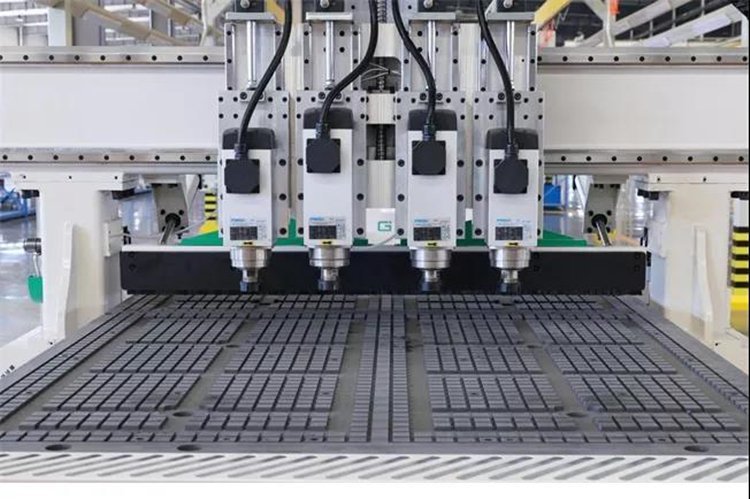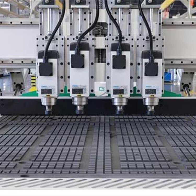 M4四工序数控开料机是一款经济型板式家具生产设备,此机型是根据板式家具三合一链接件及木屑所需孔位大小专门定制生产的一款数控开料机,机器机头部搭载四个主轴,在加工橱柜时主轴上装载的刀具分别为6mm,8mm,10mm,15mm。在打孔时四个主轴气动切换来解决所需孔位,在开槽和开料两个装载6mm刀和8mm刀的主轴进行加工,同时四工序开料机也可以实现简单吸塑门板造型的加工。四工序开料机建议刚开始干家具厂的客户选择,投资预算比较低,产量也可以满足前期的加工量的需求。