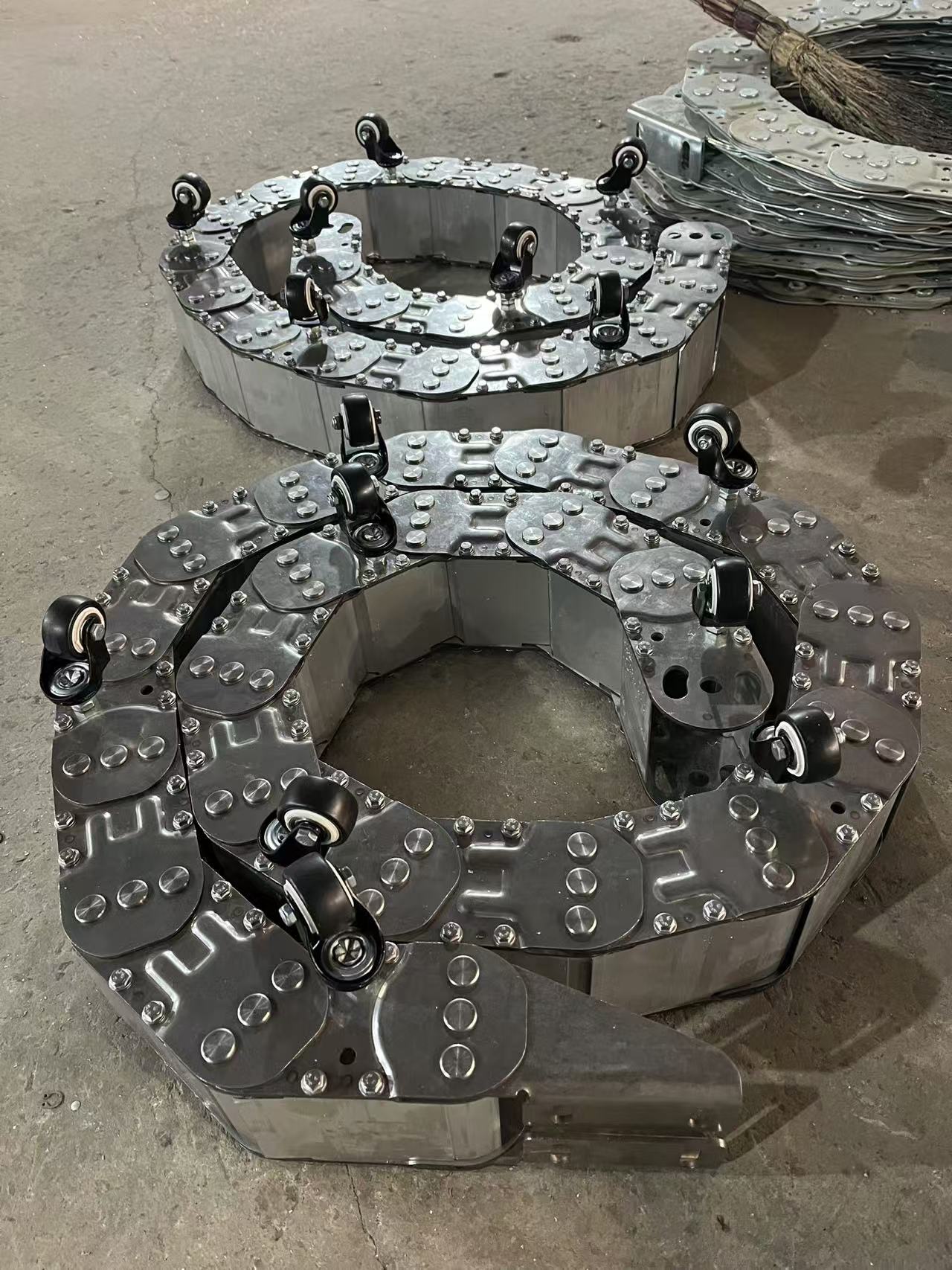 (1)当拖链需承载较大管、缆负荷时、应选用高强度支撑板——整块式