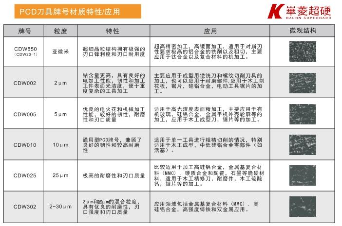 华菱超硬宝石高光刀具牌号及特性应用: