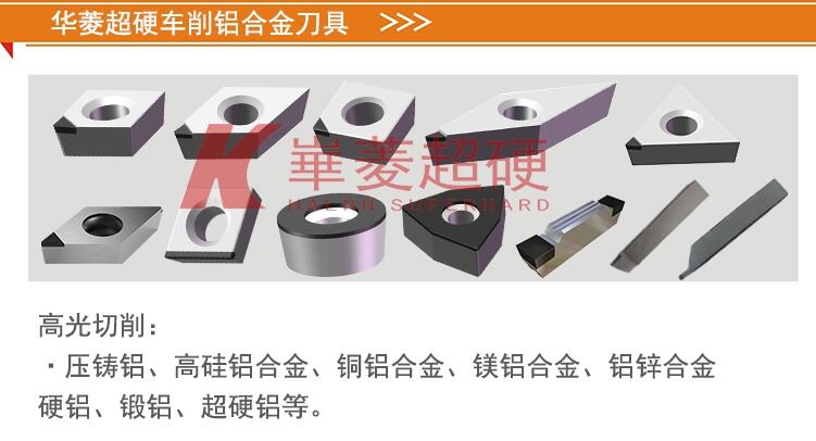 华菱超硬供应加工压铸铝、高硅铝合金、锻铝、6061铝合金、硬铝等铝合金用宝石高光刀具,包含宝石高光铣刀、宝石高光倒角刀、宝石高光车刀片、宝石高光铰刀以及非标宝石高光成型刀刀具等,华菱超硬负责设计的刀具,或承接的其他技术改进项目,由华菱负责免费调整,直至客户满意,欢迎新老客户来电垂询!