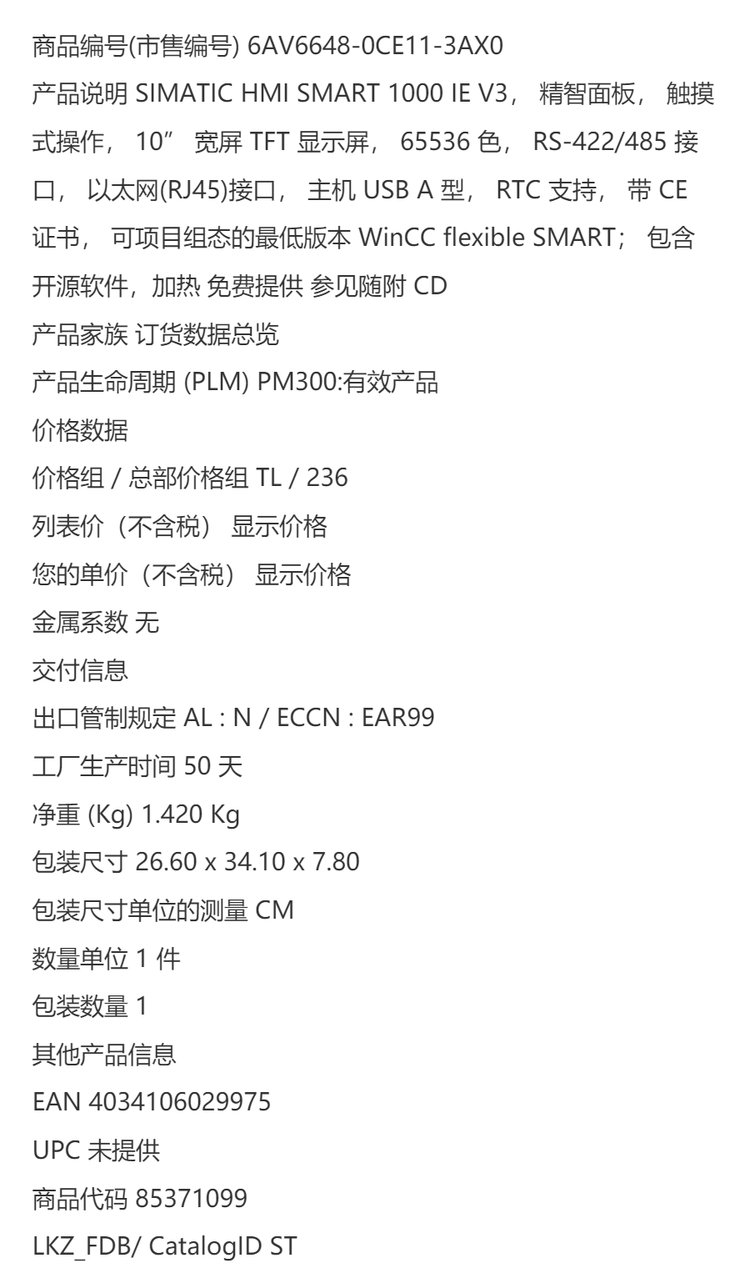 | 物料编码 | 6AV6648-0CE11-3AX0 | ||