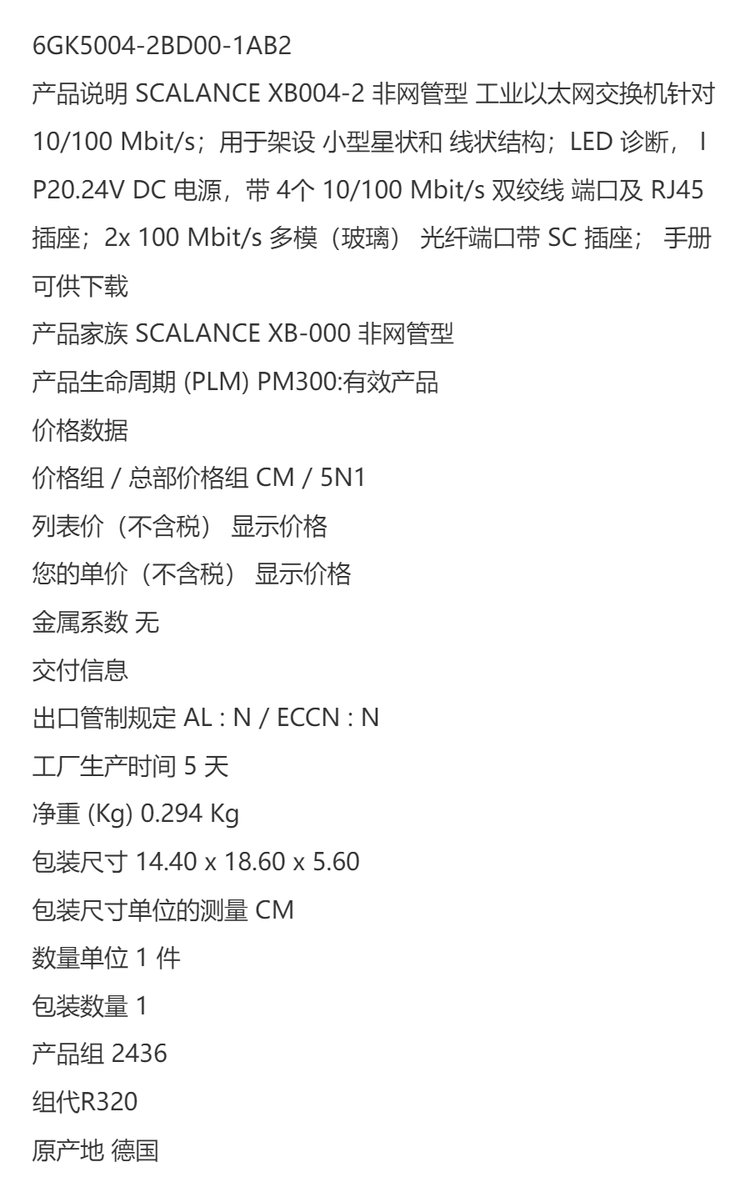 | 物料编码 | 6GK5004-2BD00-1AB2 | ||
