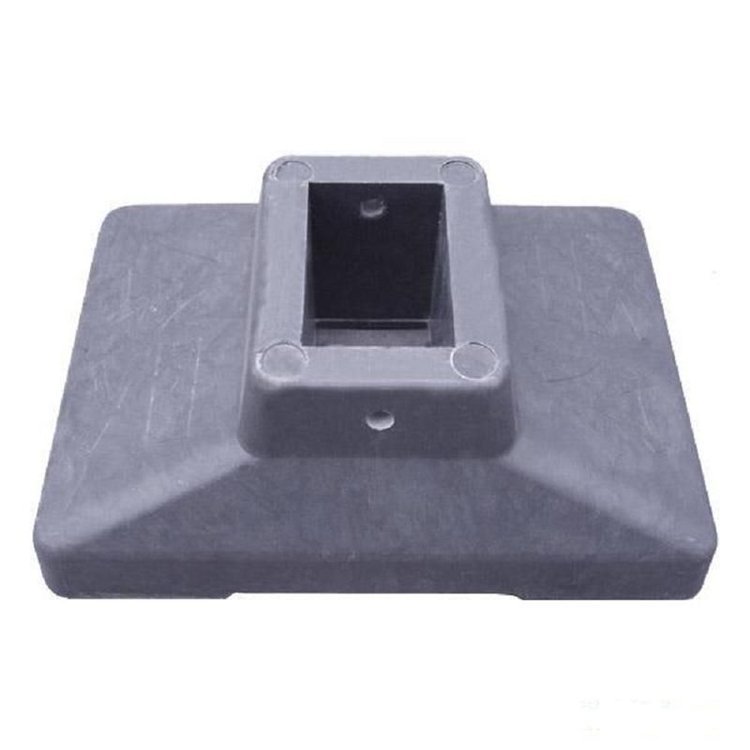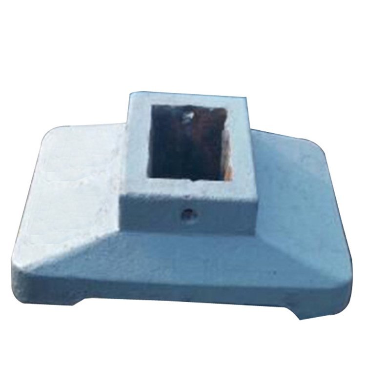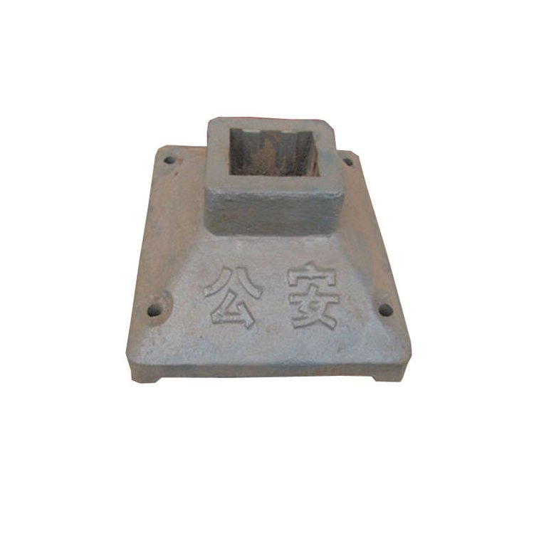 护栏底座俗称马路墩子,交通护栏底座,道路护栏底座,以铸铁为材料,是目前应用较为广泛的一种路面设施。护栏底座根据铸件结构、重量和尺寸大小,铸造合金特性和生产条件,选择合适的分型面和造型、造芯方法,合理设置铸造筋、冷铁、冒口和浇注系统等,以保证获得铸件。