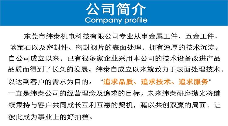 东莞市纬泰机电科技有限公司专业从事平面研磨加工 小五金平面抛光加工,平面度加工,双面研磨加工,平面磨加工,镜面抛光加工,研磨加工,金属工件、五金工件、蓝宝石以及密封件、密封阀片的表面研磨抛光加工处理,拥有深厚的技术沉淀。自公司成立以来,已有很多家企业采用本公司的技术设备改进产品品质而得到了长久的发展。纬泰自成立以来就致力于表面处理技术秉持与客户共同成长互利互惠的契机,藉以共创双赢的局面,让彼此成为事业上的好拍档。