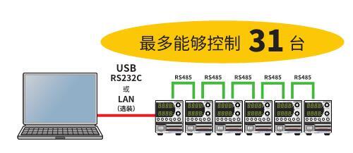 PAV系列标配USB/RS232C/RS485接口。如下所示,Max能够连接并控制31台PAV系列。