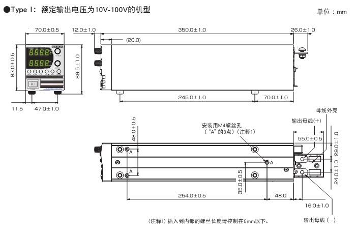 类型Ⅰ :70W×83(89.5)H×350(388)Dmm