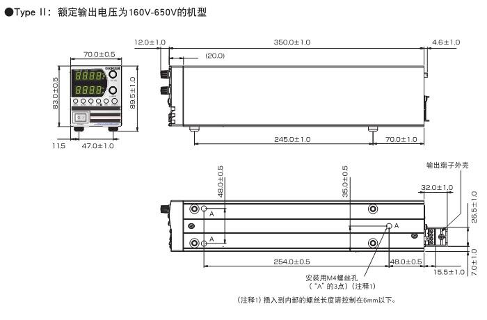 类型Ⅱ :70W×83(89.5)H×350(366.6)Dmm