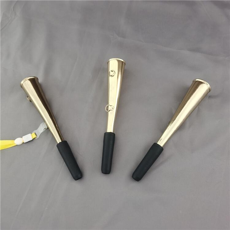 铁路巡道喇叭使用H68铜带,采用乐器工艺制作而成。做工精致、外形美观,可挂绳,携带方便,质量可靠、声音洪亮、性能稳定。