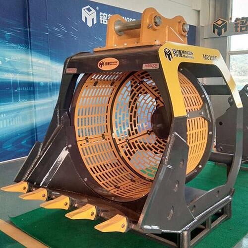 挖机筛分斗用于高速铁路、高速公路等搅拌站、砂石料的清泥、分选作业。本机结构由机架、筛筒及传动部分组成。结构简单经济适用,易操作。滚筒筛砂机可装在地脚孔的基础上,也可不用地脚螺栓直接安在平整的地面上。安装工作完成后,接通电源,(筛筒旋转方向用户可自己选择)