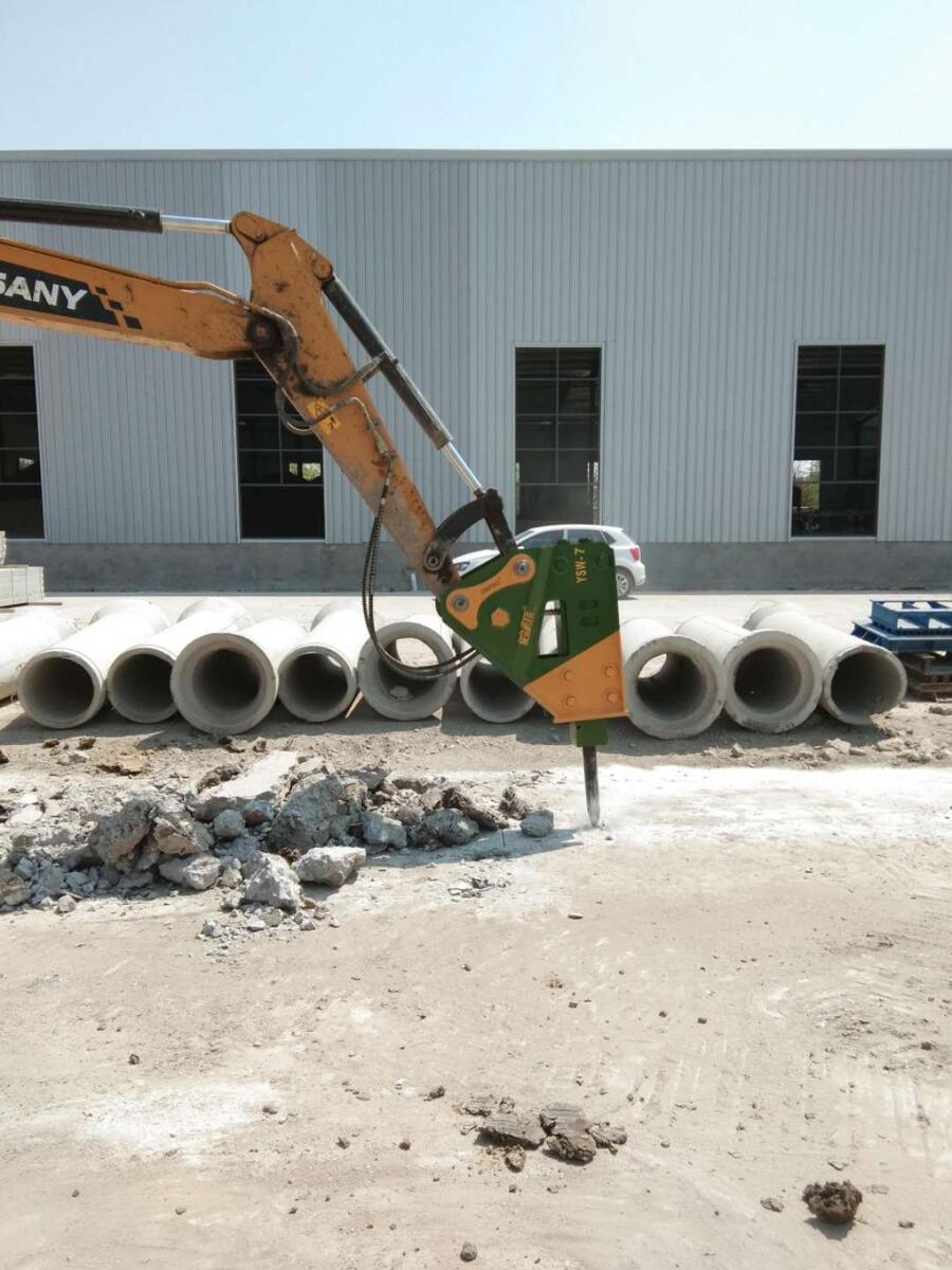 ???1)仔细阅读液压破碎锤的操作手册,预防损坏液压破碎锤和挖掘机,并有效地操作它们。