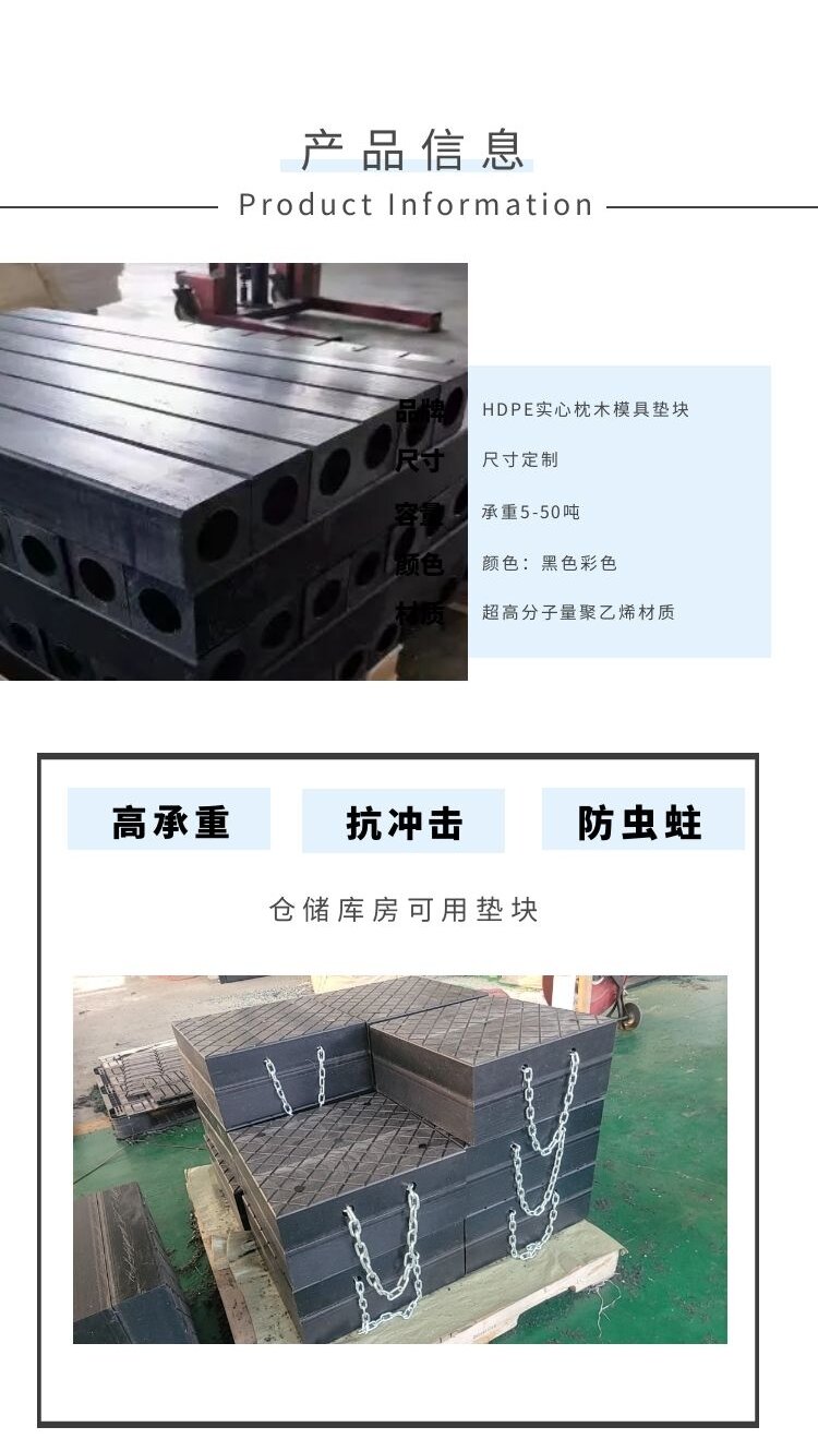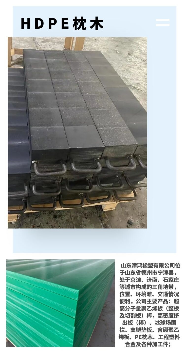 津鸿耐磨抗冲击超高分子量聚乙烯板黑色阻燃实心UHMWPE垫块枕木