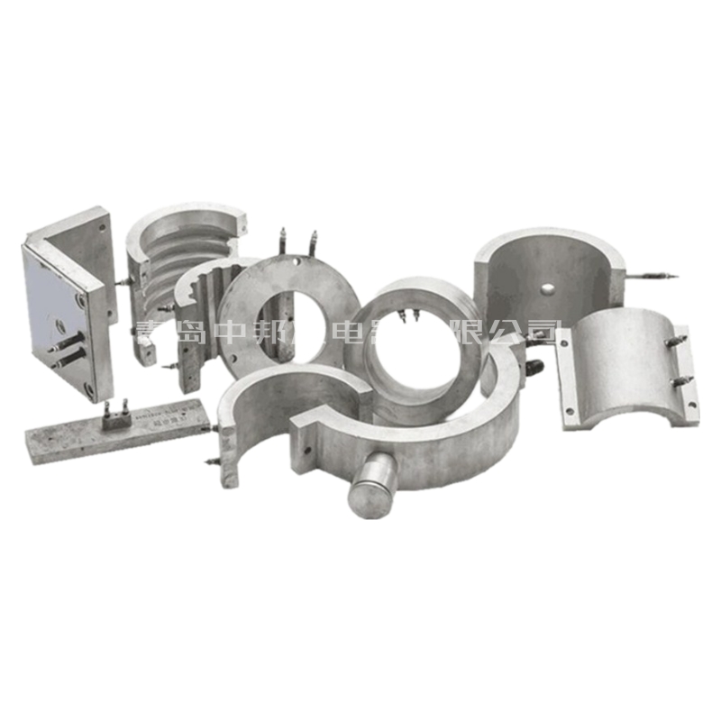 铸铝加热器是以管状电热元件为发热体,并弯曲成型,进入模具用优质金属合金材料为外壳以离心式浇铸成各种形状,有圆型、平板、直角型、风冷、水冷及其它异型等。经精加工后它能和被加热体紧密贴合,铸铝加热器表面负荷可达到3w/cm2。