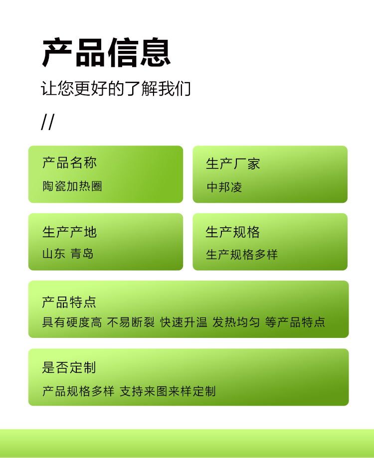 青岛中邦凌所生产的陶瓷加热圈质保1年,设计使用寿命5-8年以上。