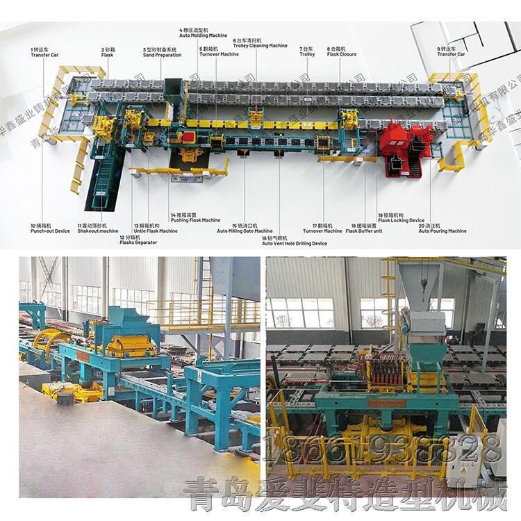 自动造型生产线,自动铸造线,水平分型有箱造型,自动静压造型线适用于粘土砂工艺造型,可生产大批量的中大型铸件,提高产能,节约成本,生产的铸件品质好,精度高,可生产复杂的铸件,主要有汽车配件,轮毂,管件,井盖,纺织机械配件,机床配件等。