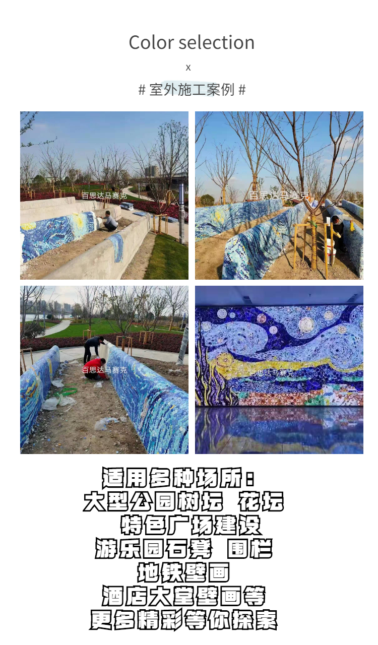 | 功能空间 | 墙壁背景墙,公园石凳装饰,室外涂鸦壁画装饰等 | ||