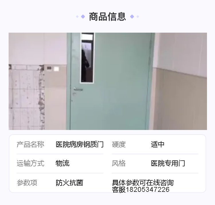 | 制作工艺 | 门体厚实,开合灵活,满足多种病房需求 | ||