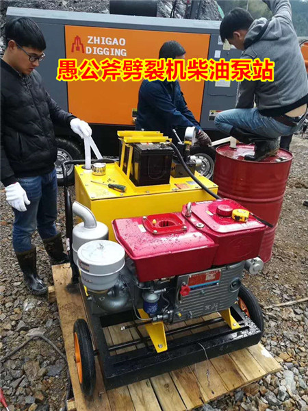 因为国内的岩石硬度一般很高,很多劈裂机动力不够,经常会出现劈裂枪在孔内分不动之后就夹枪的情况。大家可以想一下,如果没有强劲的劈力与驱动压力,怎样去分裂岩石,更不用说大量的去开采岩石了。愚公斧劈裂机,泵站承载了更大的压力,较高可达到60map,高压力伴随而来的是劈裂枪巨大的分裂力度。愚公斧开山机,力大5000吨,开山破石专用设备,一次性解决不能用(zha-yao)、岩石分不开,炮锤分的慢,效率上不去等破石难题。