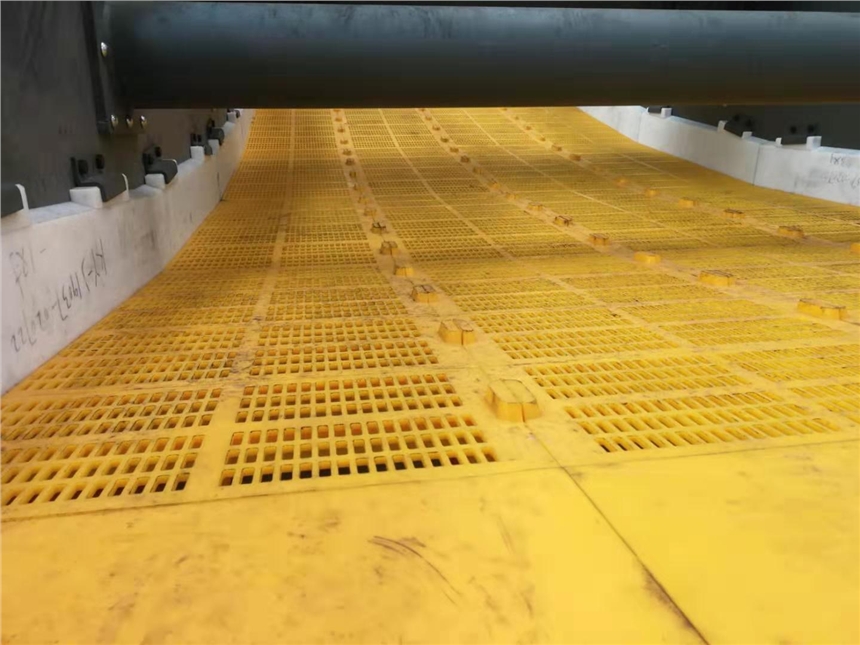 8、由于聚氨酯二次振动的特点,聚氨酯筛板具有自清理作用,因此筛分效率高。