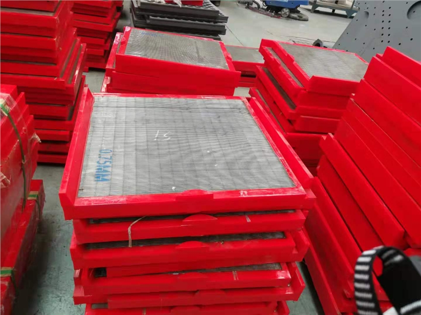 4、耐湿性能好,可在水为介质的条件下工作,且在水、油等介质的情况下,聚氨酯与物料的摩擦系数降低,更利于透筛,提高筛分效率,并可避免潮湿微粒的粘附,同时因磨擦系数降低,磨损减少,使用寿命提高。