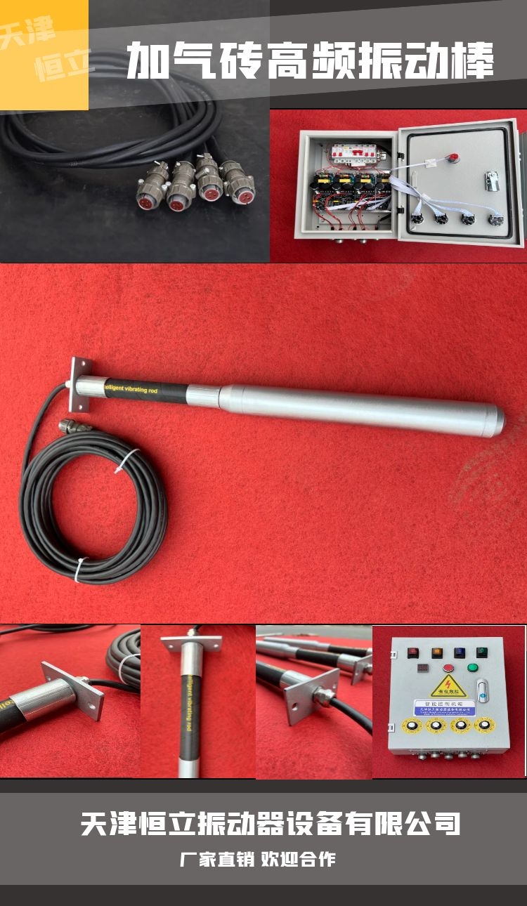 天津恒立振动器设备有限公司生产的加气砖气泡整理机 高频振动棒 智能振动器。智能加气砖高频棒及控制系统,又名加气砖气泡整理机,整套产品由总控箱一个,控制箱3-5个,振动棒12-20根组成。加气块混凝土是一种轻质多孔、保温隔热、防火性能良好、可钉、可锯、可刨和具有一定抗震能力的新型建筑材料。一般重量为500-700千克/立方米,只相当于普通的的1/4-1/3,普通混凝土的1/5,是混凝土中较轻的一种,适用于高层建筑的填充墙和低层建筑的承重墙。使用这种材料,可以使整个建筑的自重比普通砖混结构的自重降低40%以上。由于建筑自重减轻,地震破坏力小,所以大大提高建筑物的抗震能力。 每个好的建筑都是由优质的建筑材料,质量轻的建筑材料,这样降低了自重,有很好的效果!
