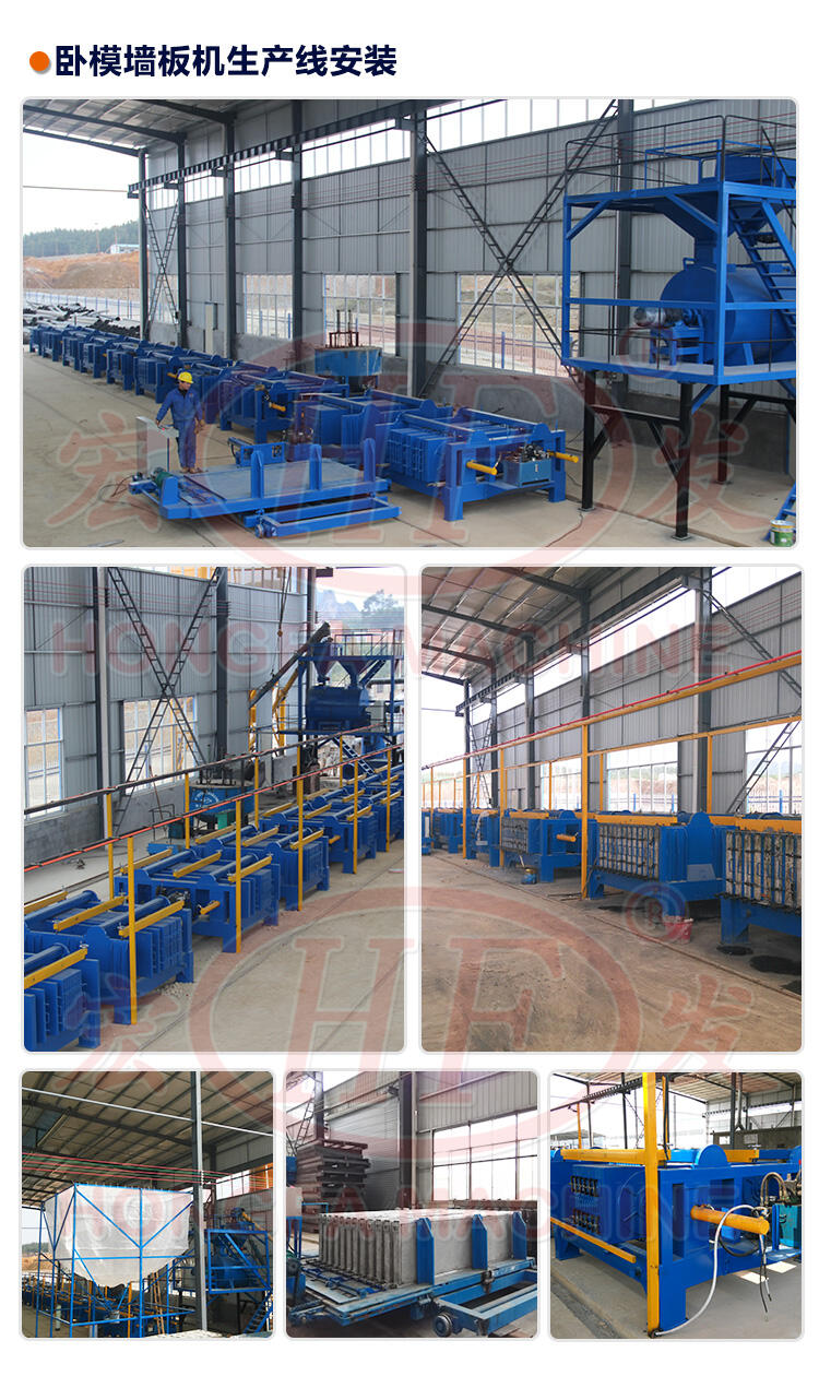 1、设备组成:由搅拌机、注浆机、墙板成型机、脱模翻转台、液压系统、电气系统等六部分组成。
