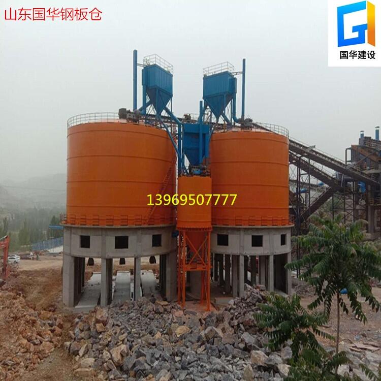 大型钢板库的荷重力完全积压在地面上,除库体做基础处理外,堆积的水泥因属均衡压力,除出料通道和隔潮层,库底不需特殊处理。库体焊接属搭接,不需要支撑加强措施。球形顶除定形钢管,也不需要特殊加强物。