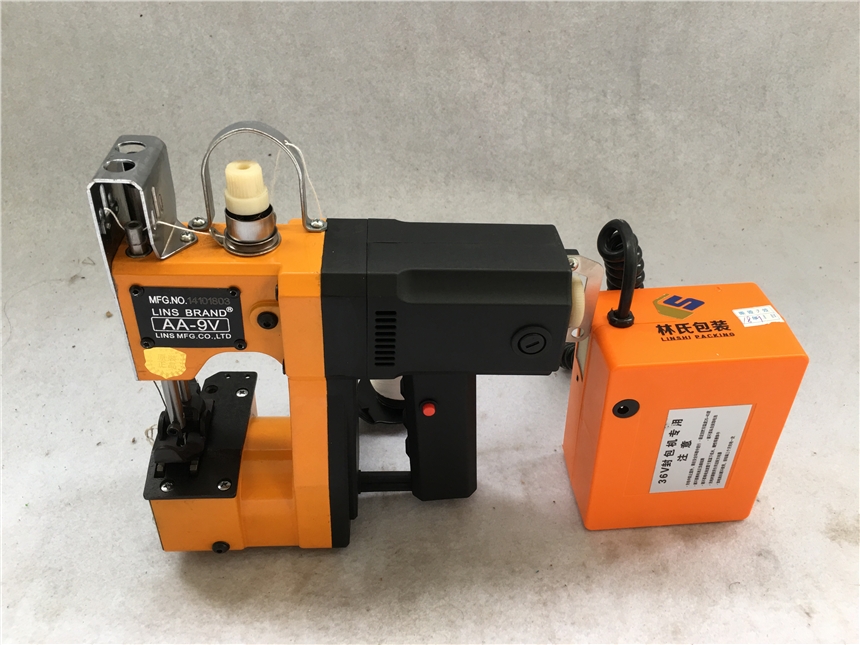 新品36V电压封包机适合无电源场地封包使用,自带锂电蓄电池,适合粮食,袋装产品包装使用,单线链式线迹,适合工作的场地:仓库,码头,港口等