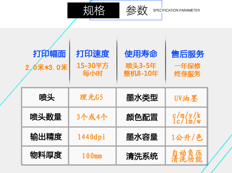 爱普生喷头:打印精度达到5880dpi,小墨点3.5pl,真正的级打印效果。2030型号双喷头价格在8-10万元,超高性价比。大的弱点是喷头不耐用,一般寿命在5-8个月。因为国内爱普生喷头都是进口喷头进行改装uv机,所以会出现堵喷头的现象,在使用中需要具备较强的操作和,否则就不要轻易的去买爱普生喷头的机器。