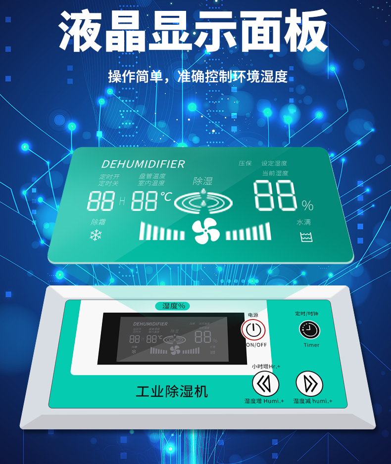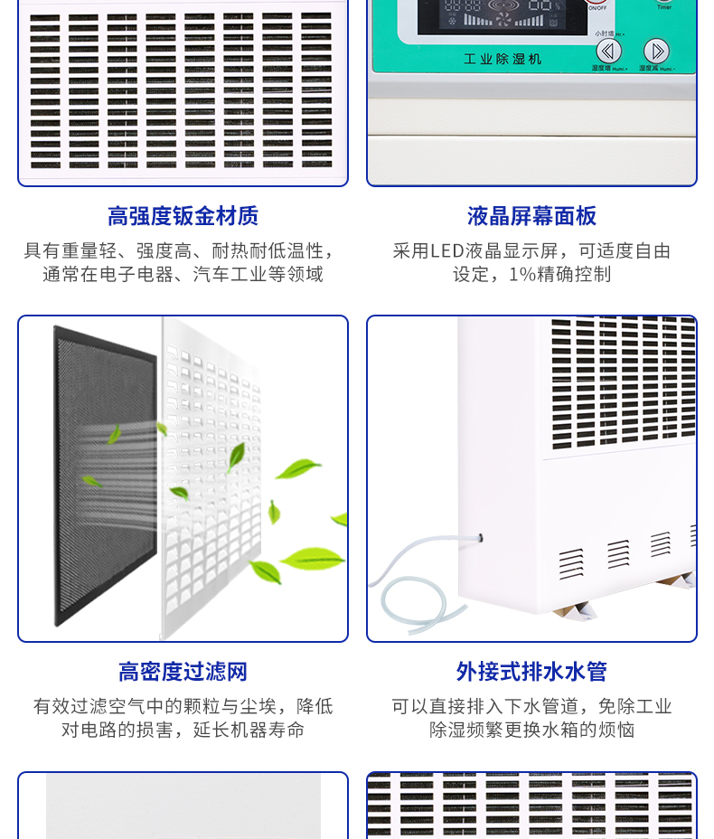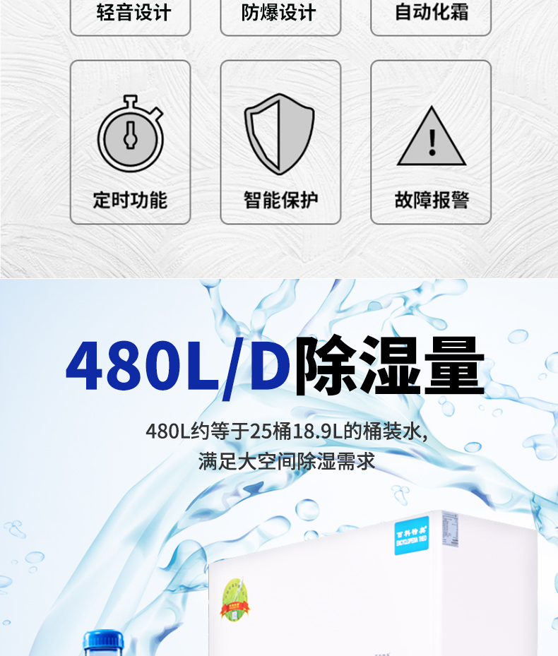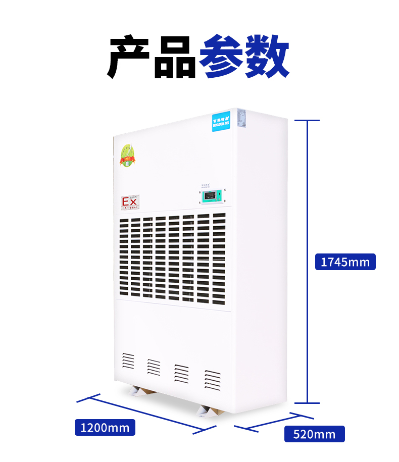 | 除湿量 | 480升/天 20公斤/小时(30℃-RH80%) | ||