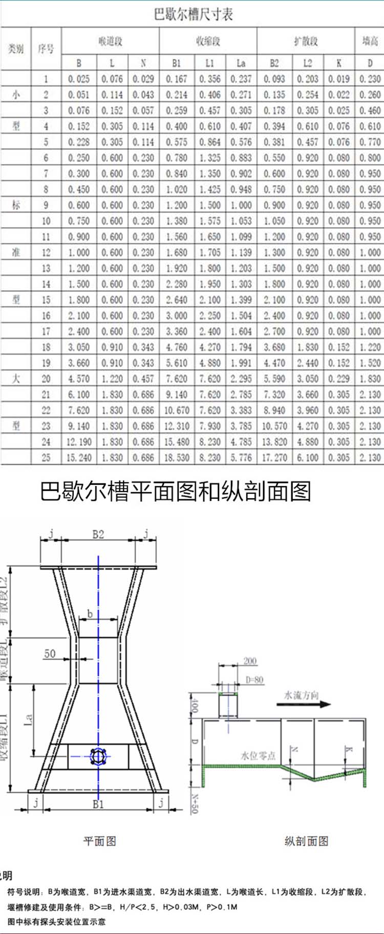 | 型号 | 巴歇尔槽 | ||