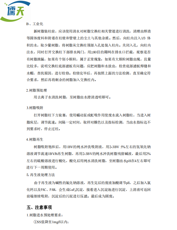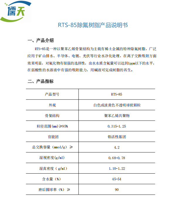 儒天RTS-85除氟树脂 光伏化工半导体等废水去除氟离子,耐高硬度