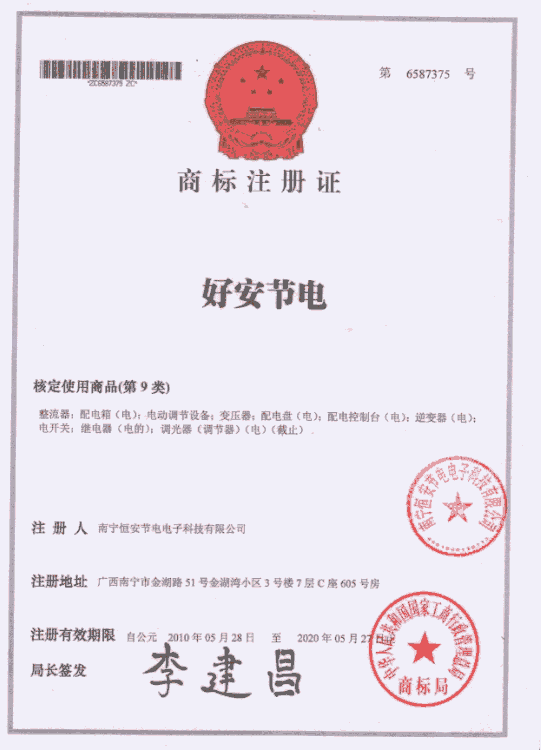 2007年起,南宁恒安节电电子科技有限公司打破了国内外节电行业的技术壁垒,公司将这种珍贵的节电核心数据进行周密的数字化设计,集合成可自动识别并自动调节电压的电网高效能优化智能分析软件,并向国家申请了技术,2007年国家总局正式批准了ZL200720079944.8/ZL2007 20082645.X两项。这一科研成果得到了时任国家党组书记、副部长李学勇及中央领导同志充分肯定。 同年“好安节电”系列节电器及我公司被评为中国能源战略高层论坛“优秀科技创新项目”,“中国节电器制造品牌”,“中国节电器制造10强企业”,“中国科技创新100强中小企业”,发明人同时获得“世界优秀发明家”和“国家高级研究员”称号。