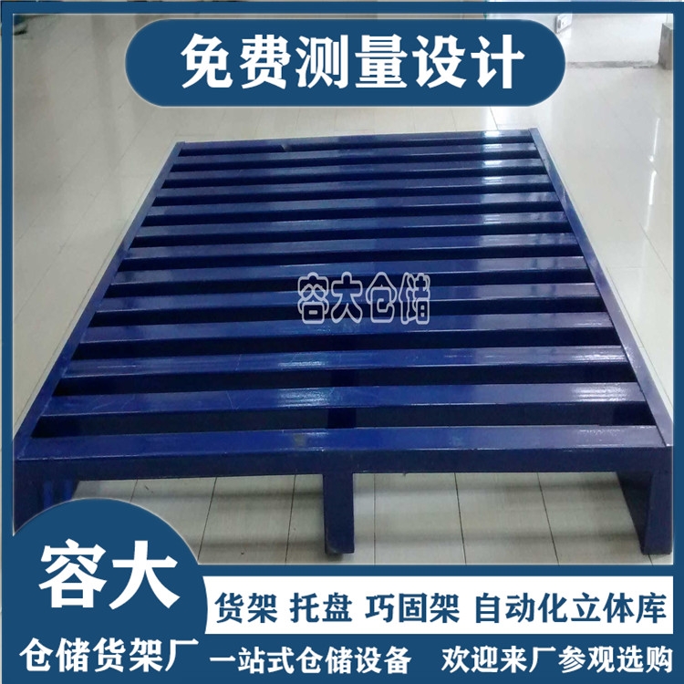 基本结构由单层铺板下设纵梁或垫块、支腿等所组成,托盘的高度以能方便使用叉车或托盘搬运车为原则;在货架上使用时磨擦系数较大,载重状态下不易滑动,使用安全可靠;钢性好,承载量大,经久耐用,使用寿命长;一般根据实际需求定做。