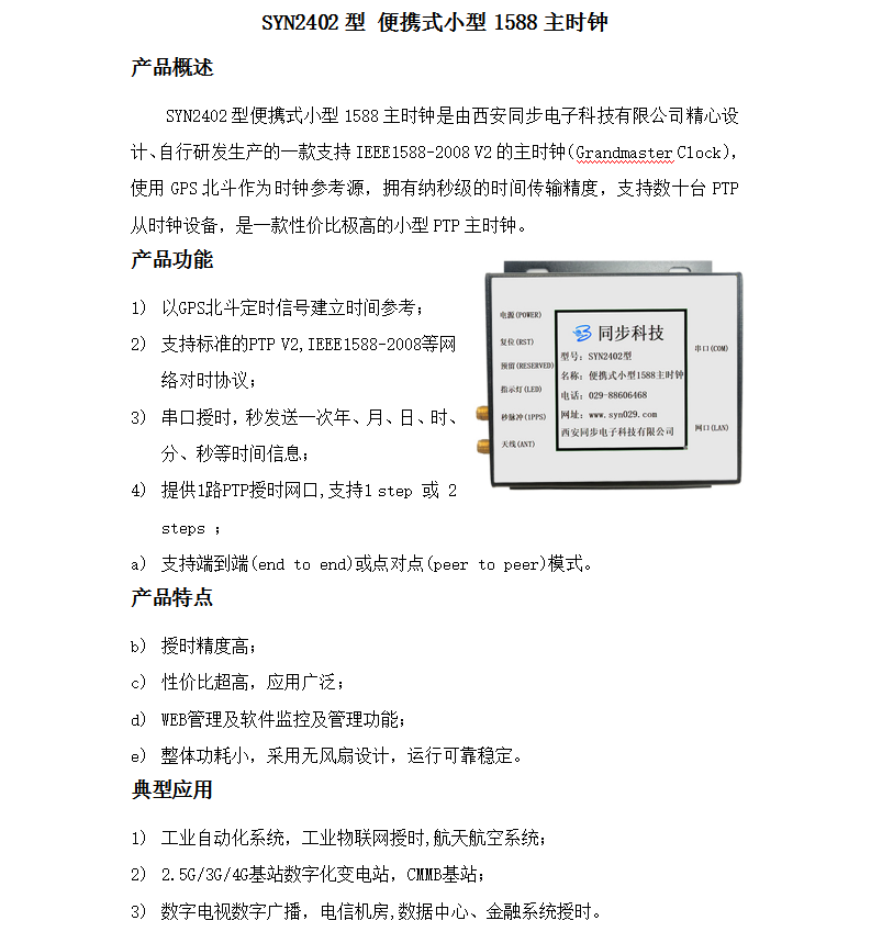 | 同步精度(RMS) | ≤±1μs(典型值100ns) | ||