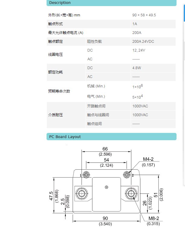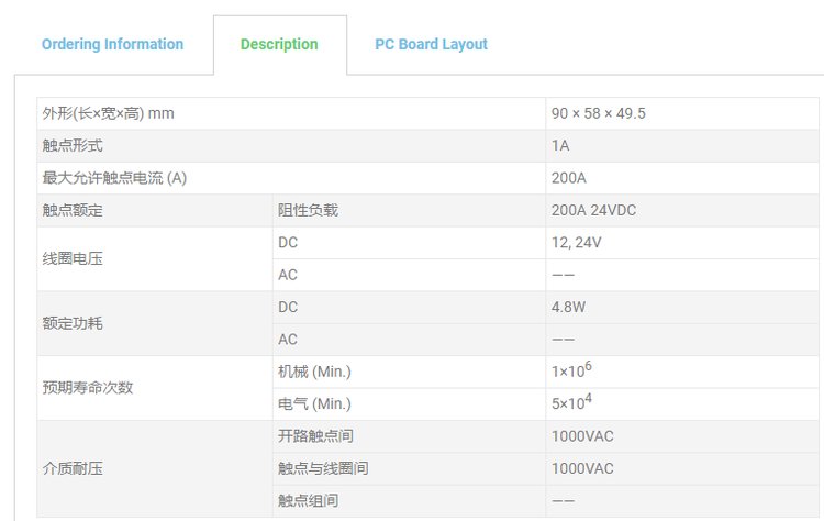 可达200A阻性负载,50,000次,23°C。