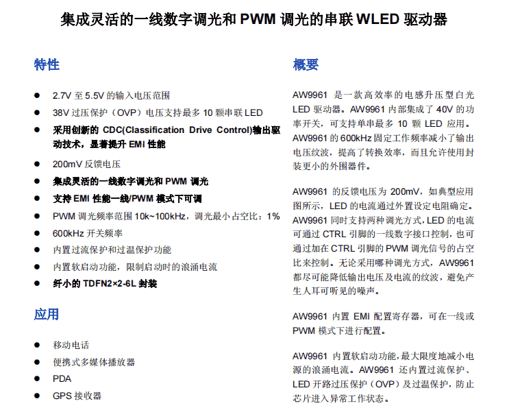 AW9961DNR 串联 WLED 驱动器