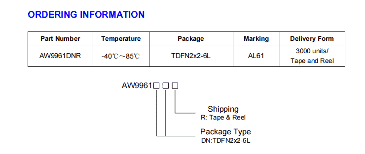 • 规格:AW9961DNR