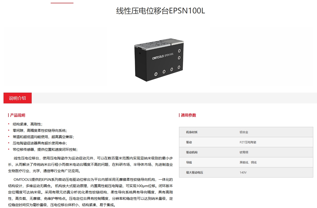 线性压电位移台EPSN100L 电动平移台 结构紧凑 高刚性 超高真空兼容 光学仪器