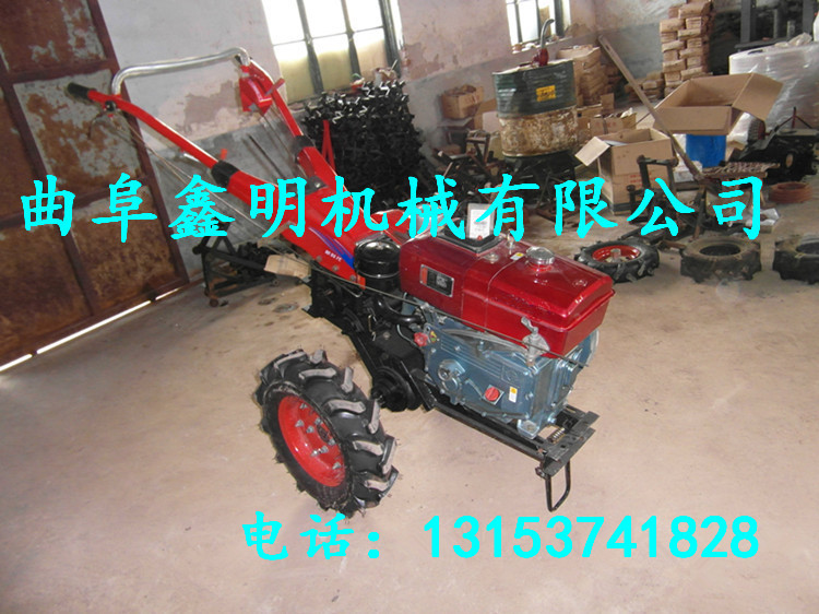 微耕机包括机架、可调高低扶手,机架上设有(风冷或水冷)柴油机或汽油机、机架和扶手上设置有变数箱,变数箱的输出轴上设置有能够沿轴移动的驱动轮或链轨。传动方式主要有:全齿轮传动、皮带传动、链条传动三种传动方式。该机具有重量轻,油耗低、相对功率大,结构紧凑、机动性强、操纵轻便灵活的特点。可爬坡、越埂、阶梯性强。广泛适用于平原、山区、丘陵的旱地、水田、果园、菜地、烟地的深旋耕、浅旋耕、犁耕。配上相应机具可进行旱地旋耕、水田旋耕、抽水、开沟、喷淋、喷药除草碎土等作业,还可牵引拖车进行短途运输,是大中型农机无法媲美的多功能田园管理机,工作稳定可靠、使用寿命长、维修方便等特点。是进入农民家庭最理想的田园管理机。