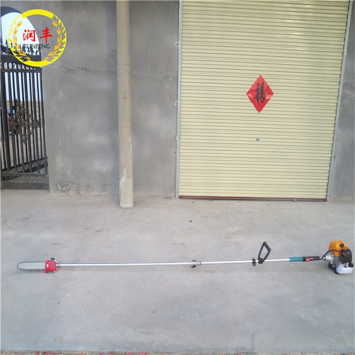 高枝油锯用于森林采伐、造材、打枝等以及木场造材、铁路枕木锯截等作业。尤其适用于高处危险之地的修剪.该产品具有功率大、振动小、锯切效率高、伐木成本低等诸多优点。已成为我国林区手持式采伐主导机械。该产品可任选其中一个工作头,如割草机头、割灌机、高枝油锯、绿篱剪四种用具。此产品携带方便,使用简单,具有此四种功能,可选购多功能高枝产品,四合一,三合一产品。