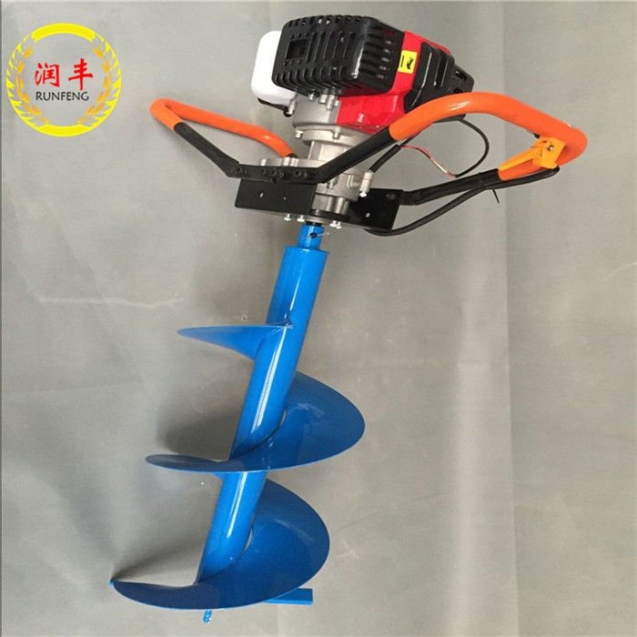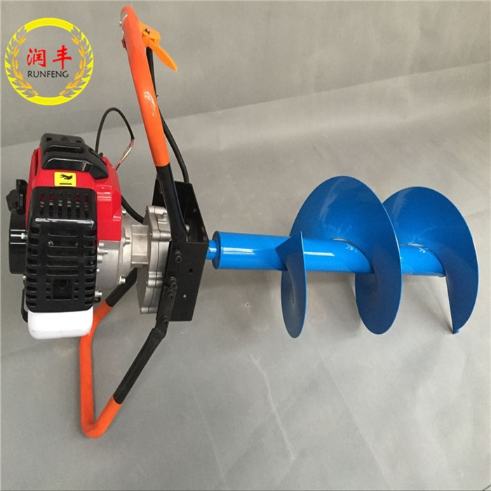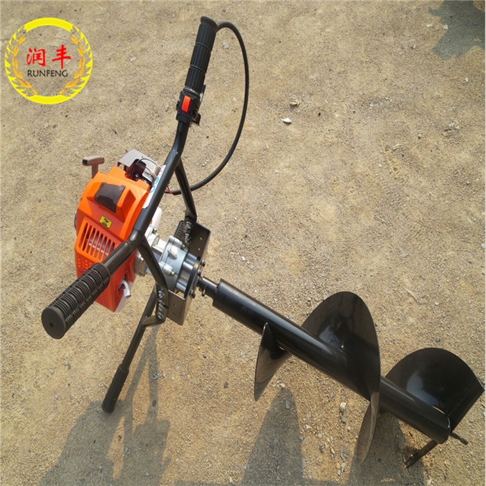 植树挖坑机是适用于园艺、城市绿化、坡地植树挖坑、沙土质地及果园种植果苗作业,荒山荒地、次生林地、采伐迹地以及黄土高原的沟坡进行造林前的整地或挖坑。同时可用于果园、桑园、茶园和城镇进行小树移植、四旁绿化和挖坑追肥。在工地、牧场可用以埋设桩柱在冰层上打孔篱笆柱桩孔,大棚立柱孔用途广泛。植树挖坑机特点:极大地提高机械化植树造林效率又能保证苗木的栽植质量。是人们退耕还林的;好帮手 植树挖坑机具有体积小、质量轻、启动快、结构功能完善、操作简单单人双人男女都可操作使用、挖坑作业机动性能好等特点,引起了各地农机部门的喜爱与重视。植树挖坑机所挖出的坑径与坑深能满足栽植树木的要求,挖出的坑径有较好的垂直度,坑壁整齐,又不太光滑利于根系的生长,此机在贫瘠的土地上挖树坑时出土率在90%以上,在坑内添加肥料和表土回填都很实用。润丰植树挖坑机钻头采用锰钢合成更加的坚硬。对硬土质,超硬土质,粘土,冻土等都能对它很有效的实施工作,并能达到工作要求.