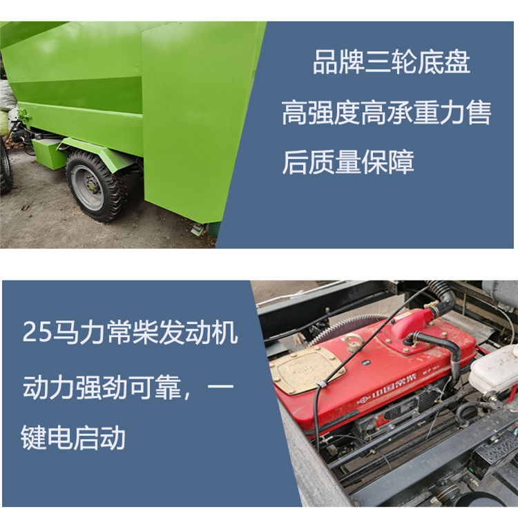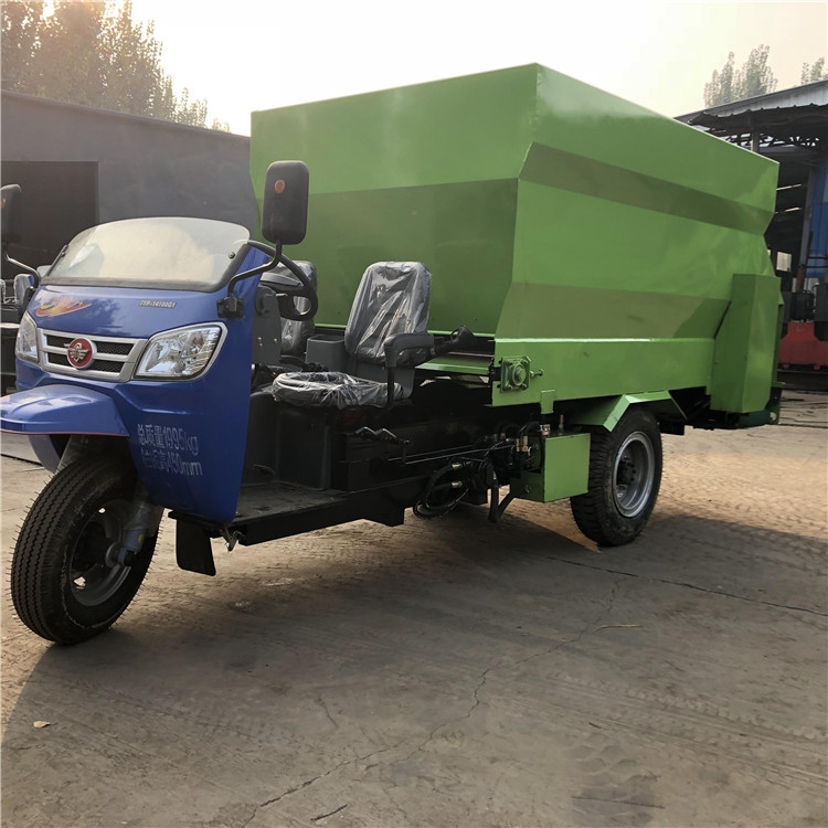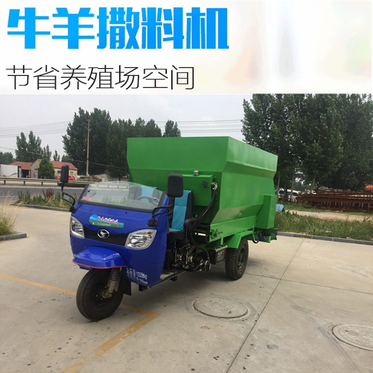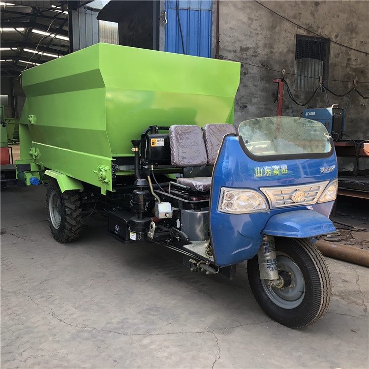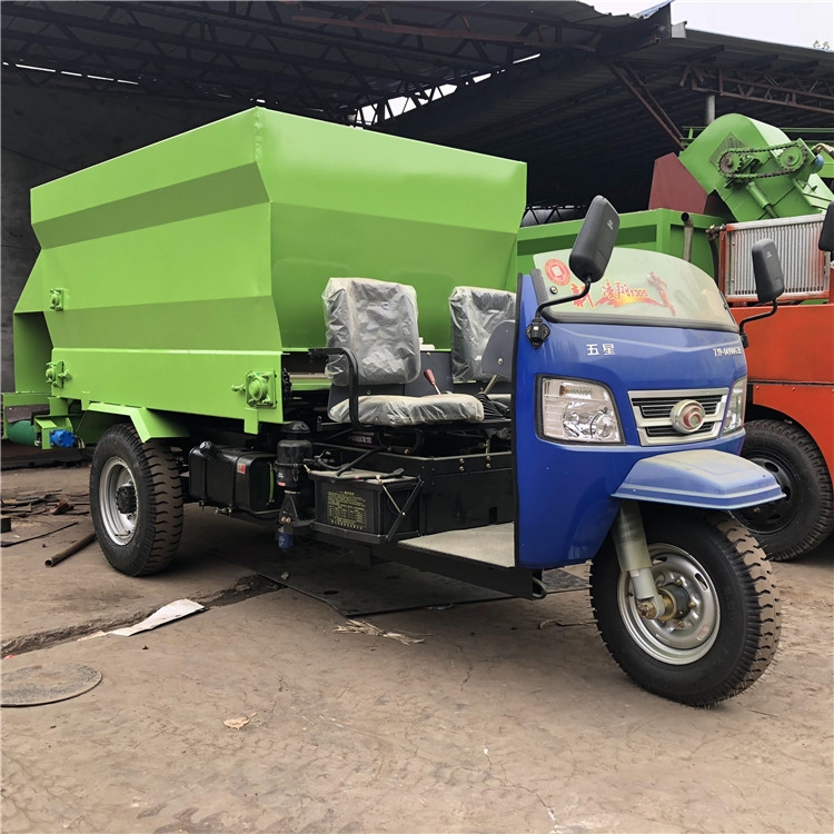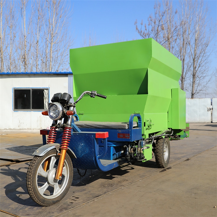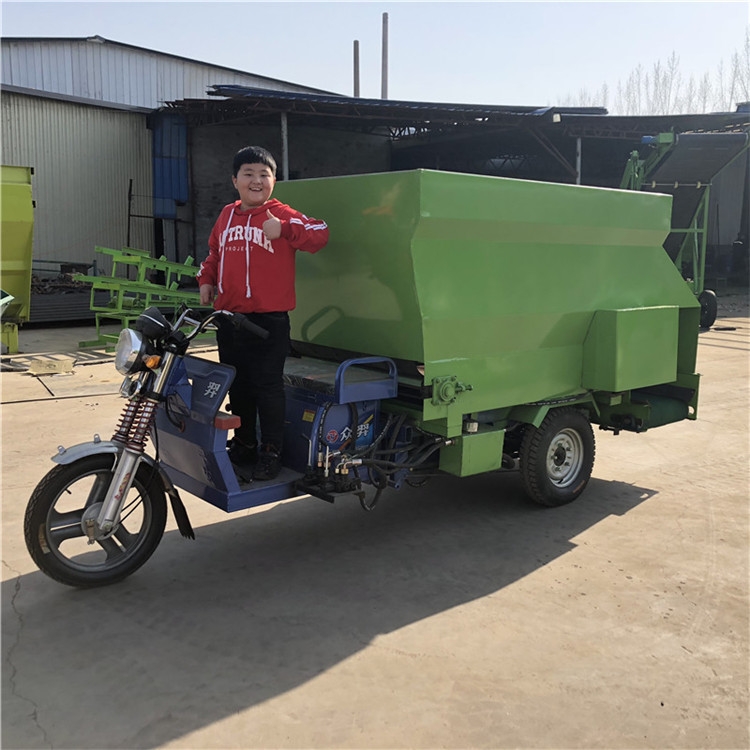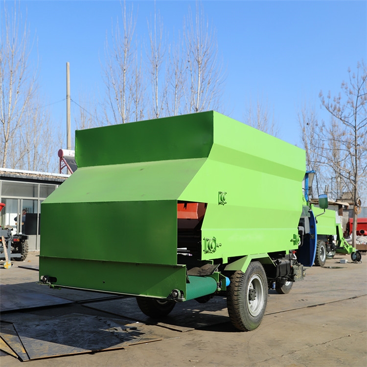 ??【产品概述】:青贮给料车适合在牛羊场过于狭窄的走道通过,青贮给料车操作简单、使用方便、价格便宜。噪音小,适用于牛羊场,避免惊吓到圈内牲口。RC-SLC-5撒料车 牛场定制喂料车 搅拌撒料车厂家