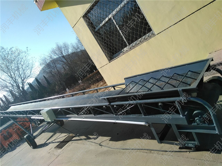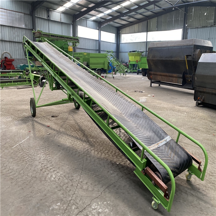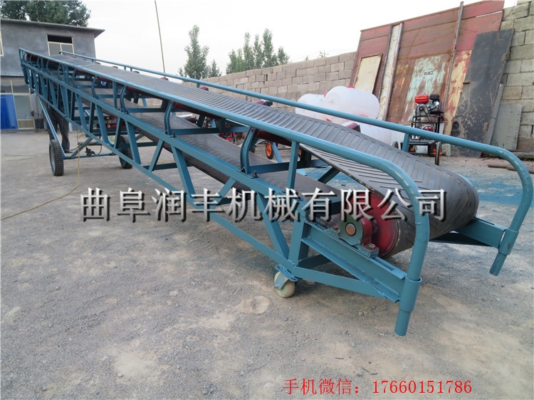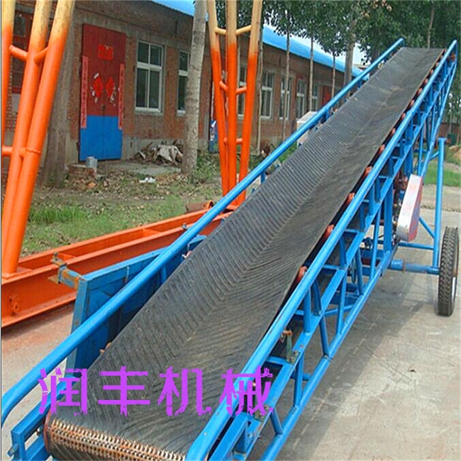 装车卸车用移动带升降皮带输送机不限制使用场地,皮带机下面带有轮子,可来回移动、是一种较方便 的装、卸车用的带式输送机,装卸小麦、玉米、大豆等散装、袋装等不规则物体,升降带移动代替了人工装卸车,提高了工作效率。玉米粒皮带输送机 短距离物料运输机 移动带式输送机