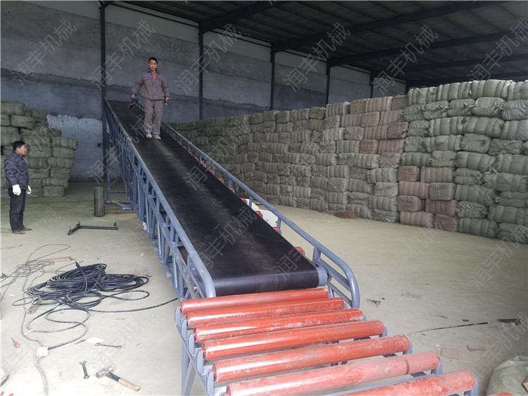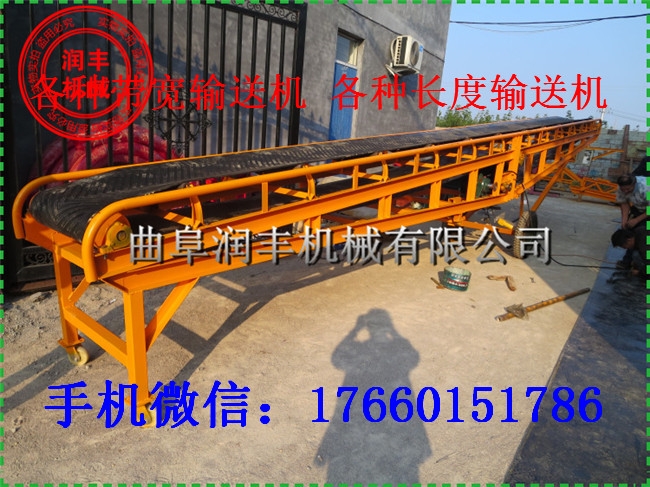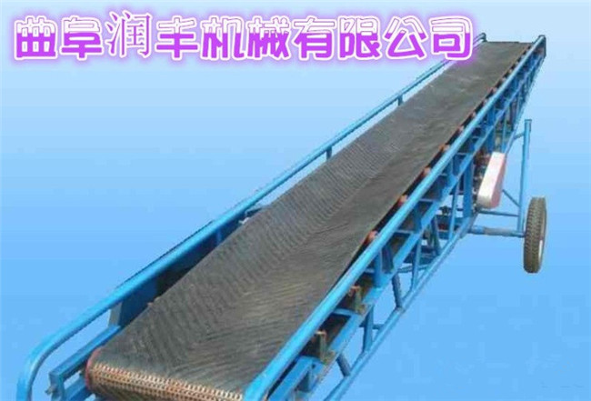 移动式皮带输送机,胶带主要有宽度500、600、650、800mm,1000、1200、1500等特殊规格可以另行设计,皮带输送机是一种连续输送散状物料或成件物品的运输设备,具有结构紧凑,工作性能、输送量大、生产效率高、操作灵便等优点,广泛运用于港口、码头、车站、仓库、料场、厂矿等地输送煤炭、砂石、粮食、化工原料、成件物品等。输送机配有行走轮,可作整机移动,输送倾角可以根据实际需要调整, 大倾角为22度,变幅机构可以手动调整,也可以采用电动执行;根据输送工艺布置要求,可以单机或多台组成水平或倾斜的输送系统。