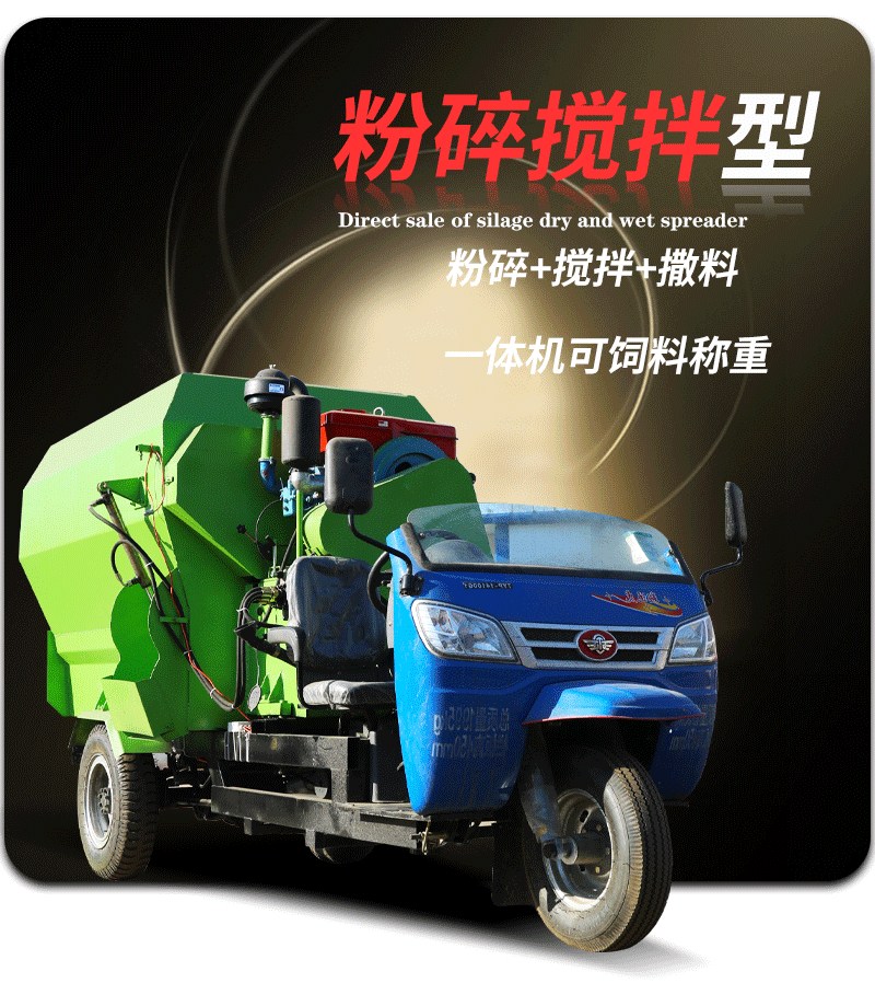 饲料撒料车提高机械化程度,提高饲养效率,可使胃中同时使用碳水化合物,脂肪和纤维素等营养成分,大大提高微生物的繁殖速度和蛋白质的产量; 整合资源,提高利用率。吊具快速抛出物料,同时安装备用大容量垂直箱。 没有存储材料,也没有死角,这使得它更容易使用。