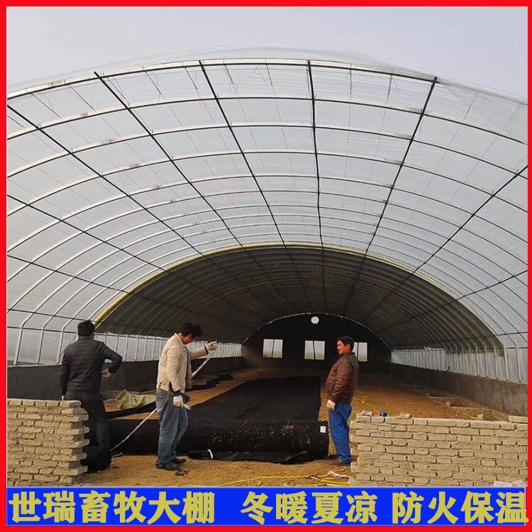 养鹅大棚钢管主架固定后,搭建棚顶从内到外依次为橡胶泡沫、厚密度农膜、草苫、薄膜和遮阳网,共5层;棚外60cm处四周开宽40cm、深30cm的沟,挖出的土用以填高棚内地面,使之呈坡形并压实;棚内中间也开一宽40cm×深25cm的沟,上面装自动饮水器;顶部南面开二个天窗(60cm×70cm),用木条撑开和关闭;大棚四周围以厚密度农膜,农膜自下往上可卷起通风,可开启高度1.7m。