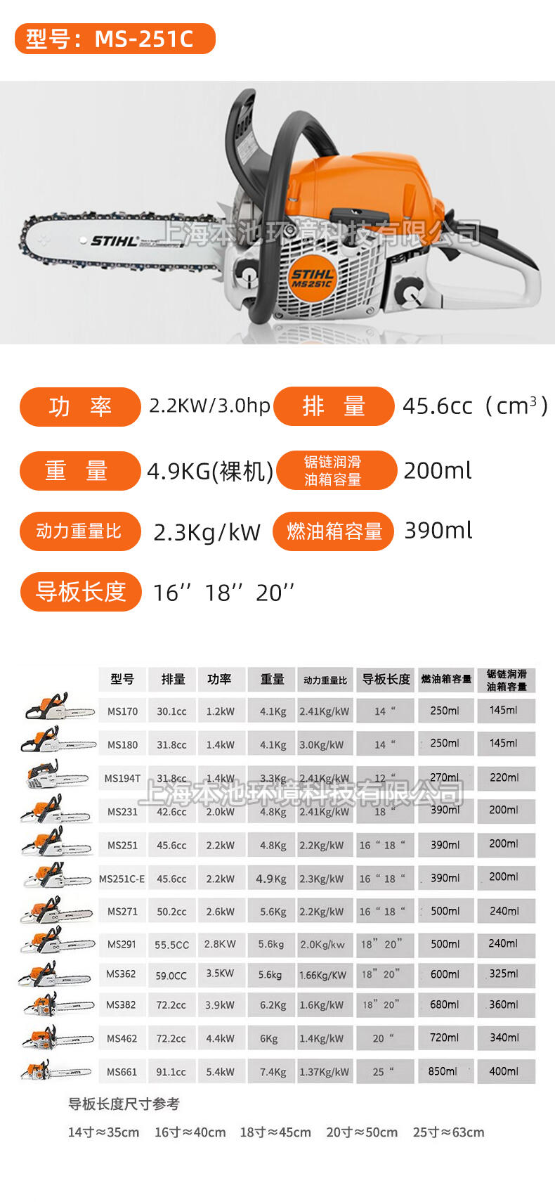 STIHL斯蒂尔油锯MS-251产品参数: