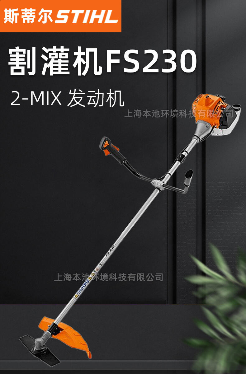 STIHL斯蒂尔割草机FS230手持式割灌机,全长1.824米,牛角把手设计,双肩带设计减轻工作压力。打草头和刀片两中款式可选。油耗低,轻松面对各种场景。开荒型割灌机,适合草原作业,园林养护,大面积修剪和杂草清除。