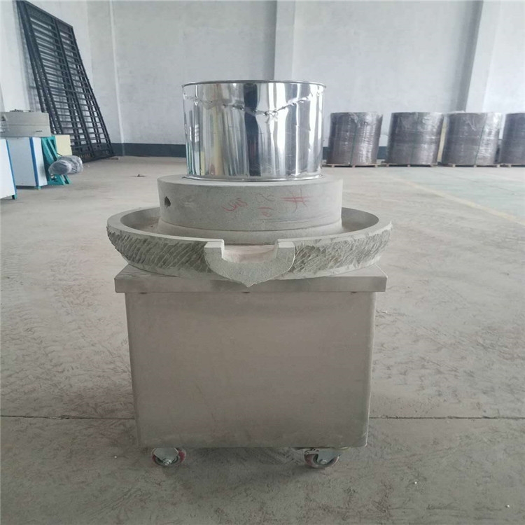 石磨是用于把米、芝麻、豆等粮食加工成粉、浆的一种机械。开始用人力或畜力,到了晋代,我国发明用水作动力的水磨。通常由两个圆石做成。磨是平面的两层,两层的接合处都有纹理,粮食从上方的孔进入两层中间,沿着纹理向外运移,在滚动过两层面时被磨碎,形成粉末。主要适用于家庭、饭店、超市、餐饮业的生产加工,低速研磨、原汁原味。可加工豆浆、米浆、芝麻酱、香油、花生酱等。